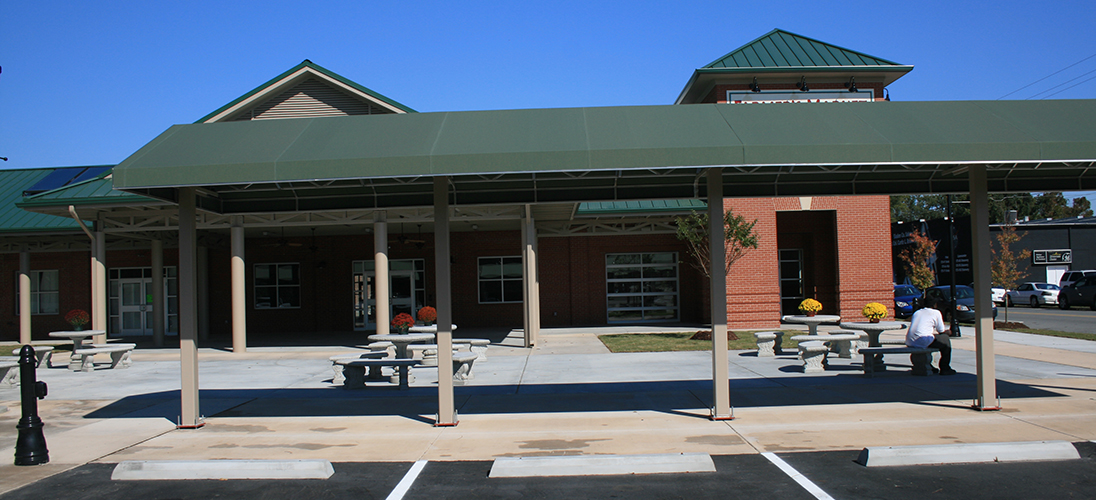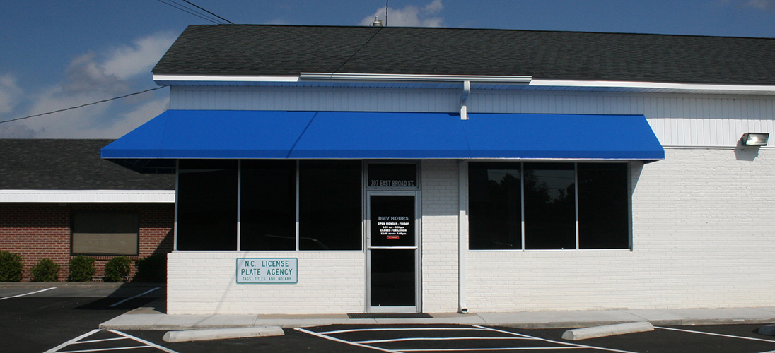 We manufacture aluminum frame fabric awnings with Sunbrella Shade. This fabric carries a 10 year limited warrany.